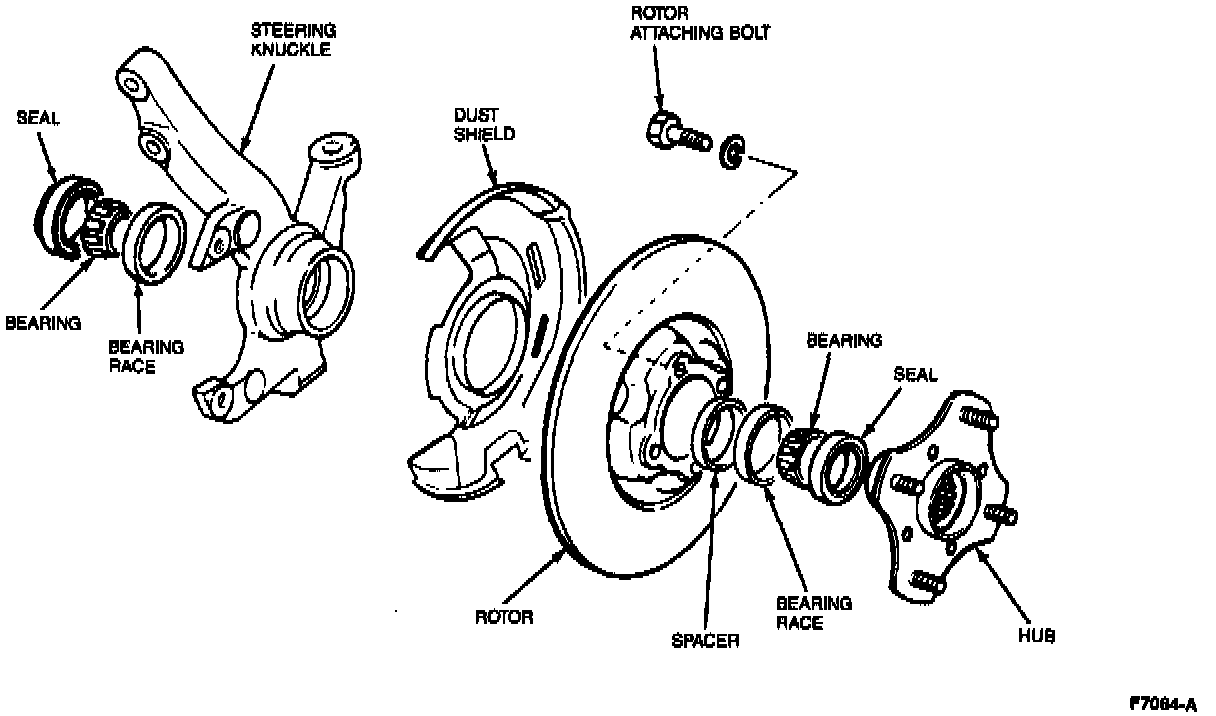 4. Tighten the center bolt in increments to 49, 98, 147, and 196 N.m(36, 72, 108, 145 lb-ft). After tightening, seat the bearings by ROTATING the steering knuckle. Verify torque of center bolt is 196 N.m (145 lb-ft).