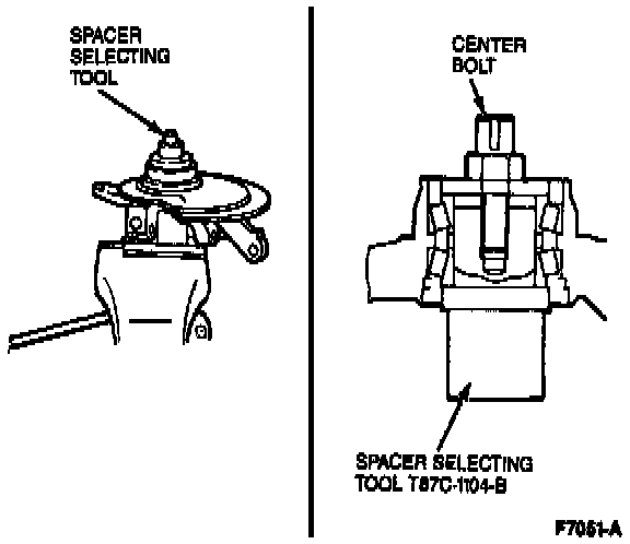 After selecting a spacer, verify the bearing preload using Spacer Selection Tool T87C-1104-B.