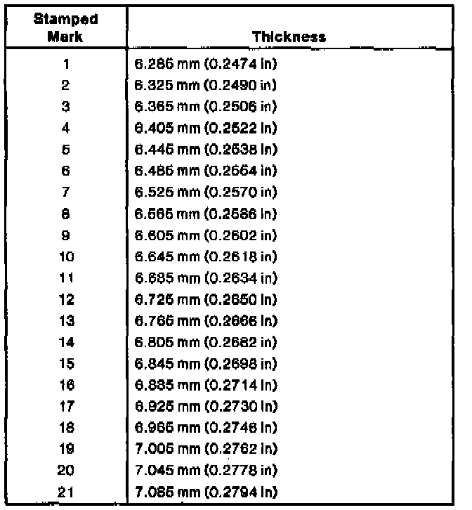 If the number is not legible, measure the spacer with a micrometer and compare it to the chart to determine which number it is.