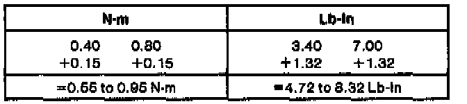 a. If reading indicates 0.25-1.8 N.m(2.21-10.44 lb-in) the spacer is the correct thickness.