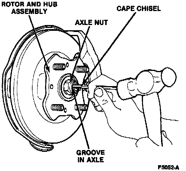 3. Carefully raise the staked portion of the halfshaft attaching nut using a small cape chisel.
