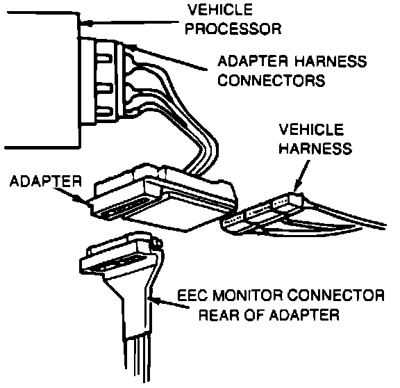 CAUTION: Vehicle ignition switch must be turned OFF before disconnecting the EEC harness cable from the EEC processor.EQUIPMENT SETUP