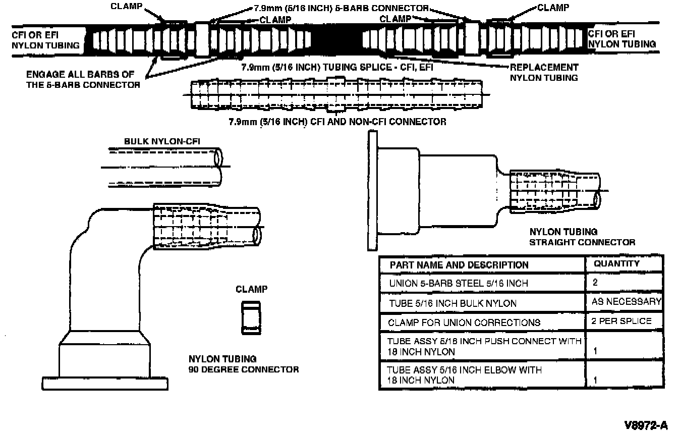 4. Select proper 7.9mm (5/16 inch) barbed connectors for completing a splice. Two connectors are required for each splice.