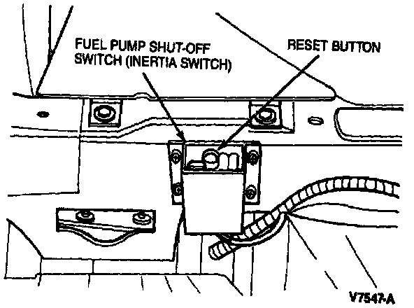 The Inertia Fuel Shut-off Switch is mounted to the LH side of the spare tire well.