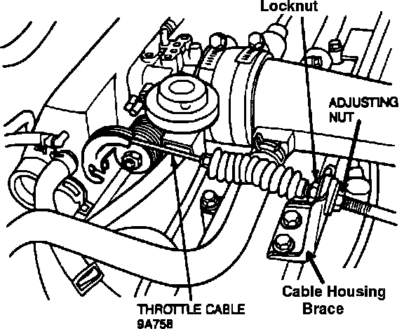 7. Adjust the cable for accelerator pedal freeplay and wide open throttle positions.