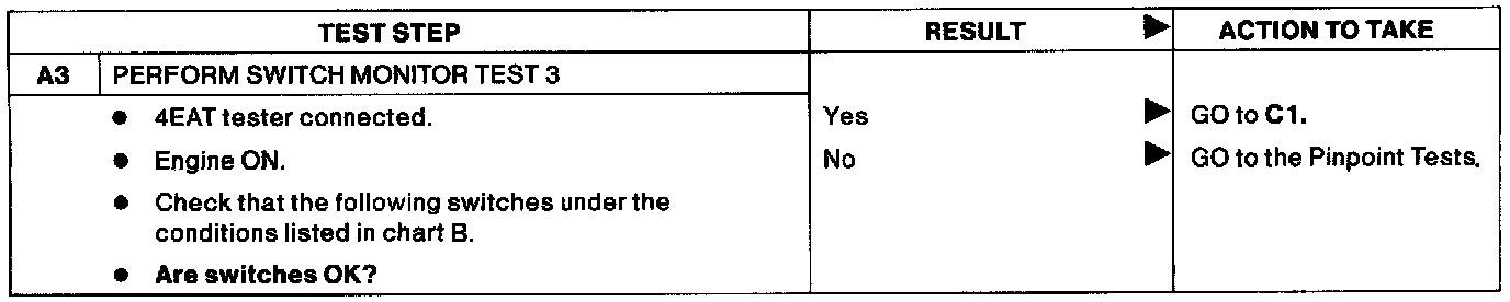 Pinpoint Test A: Switch Monitor Test.: