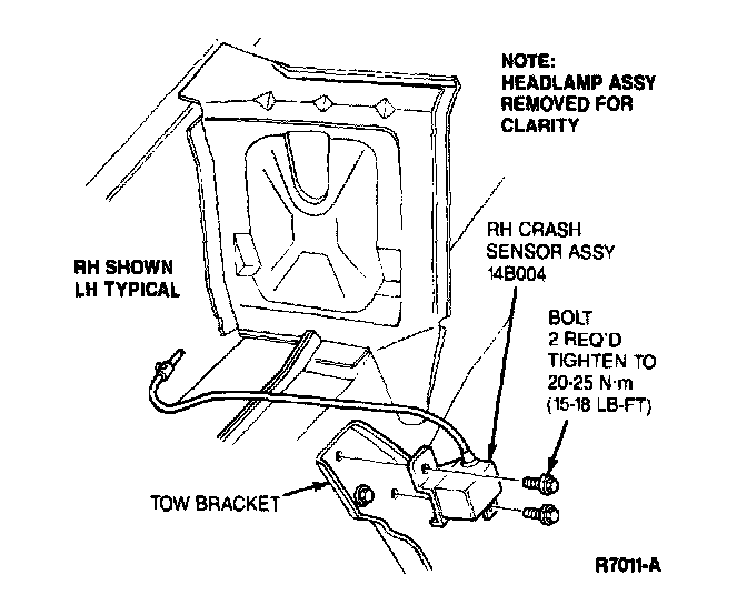 2. In servicing RH sensor, raise the RH headlamp by using the service switch. Remove RH headlamp bezel and splash shield.