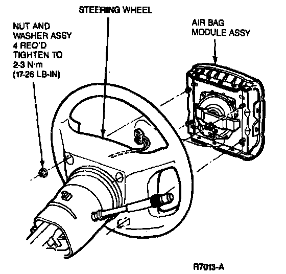 2. Position the driver air bag on the steering wheel, and install four nut and washer assemblies. Tighten to 2-3 N.m (18-27 lb-in).