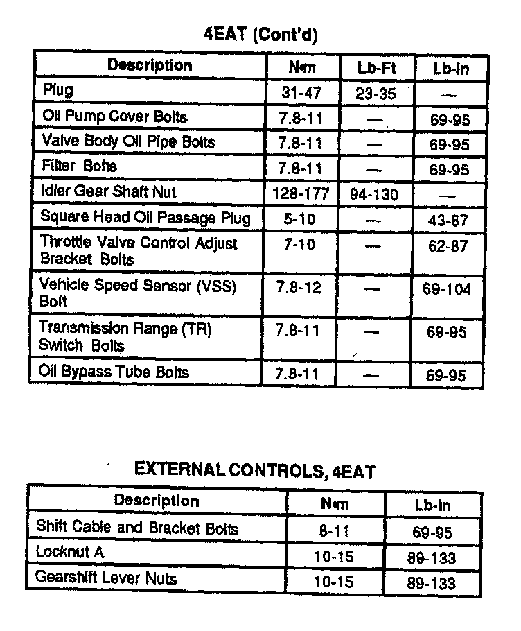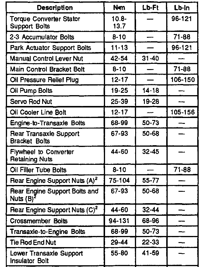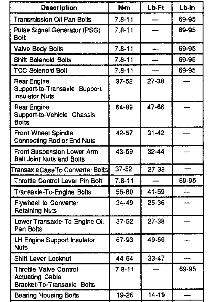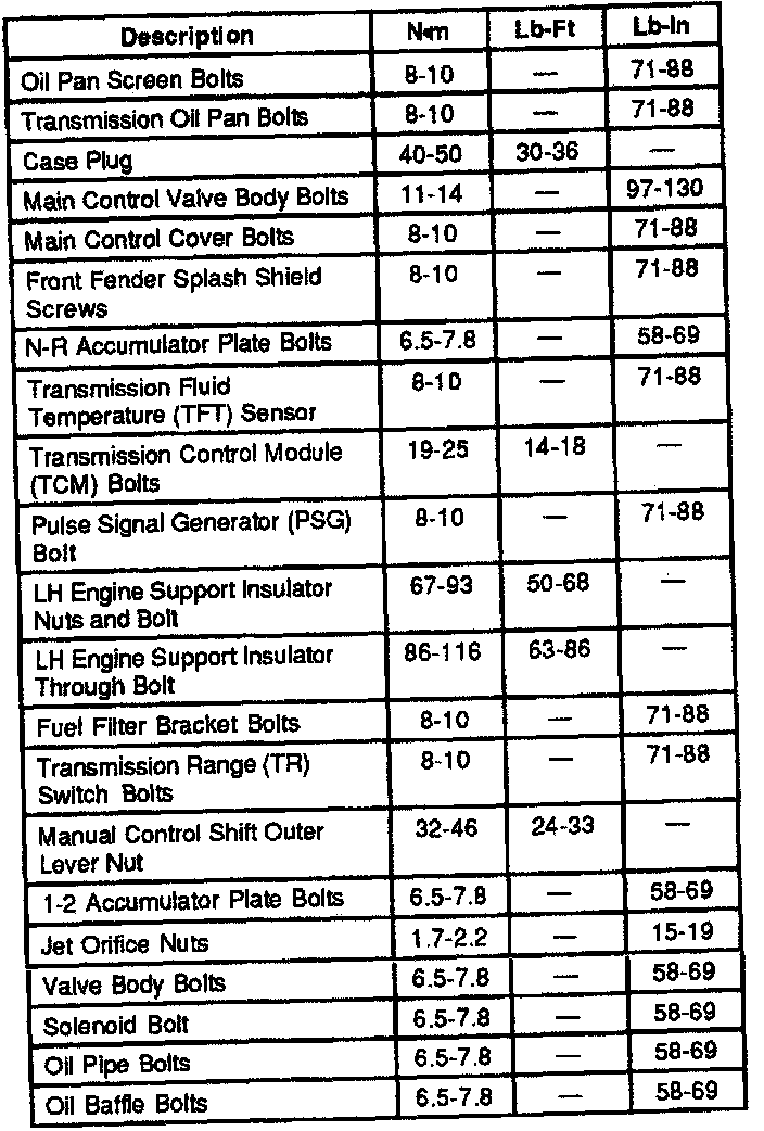 2.5L 4EAT 4-spd A/T, Transaxle Torque: