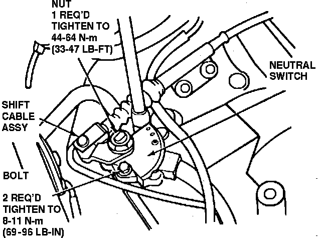 f. Torque shift cable attaching nut to 33-47 ft lb.