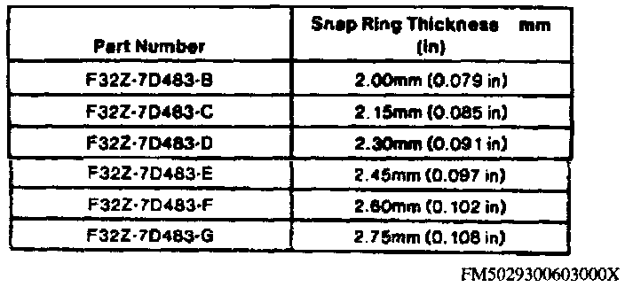 b. On 1993-96 models, select snap ring which will bring clearance to specification.