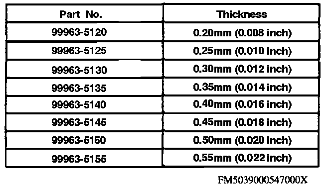 j. Select shim(s) closest to largest measured clearance in selector.