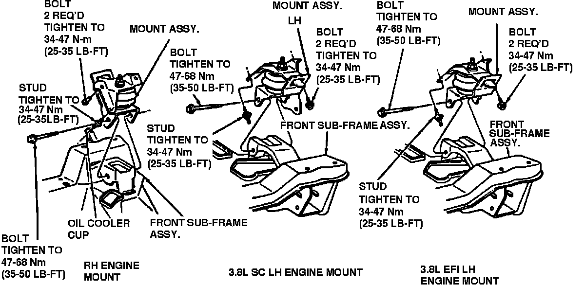 2. Raise and support vehicle, then support engine using a jack and wood block placed below engine.