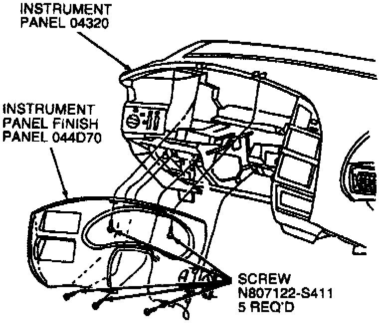 4. Remove two screws retaining cluster finish panel above the instrument cluster face.