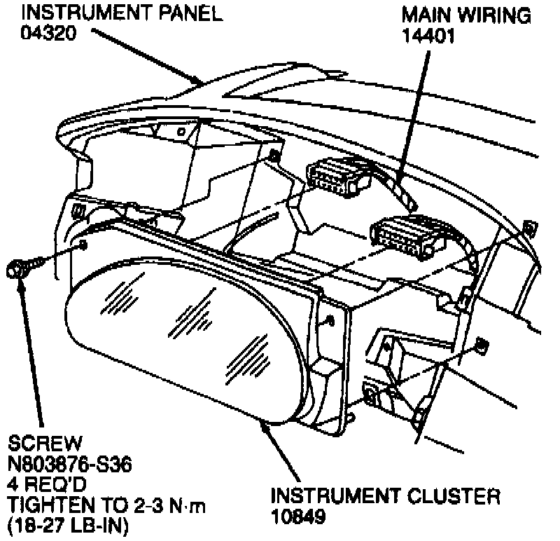 8. Remove four screws retaining the instrument cluster to the instrument panel.