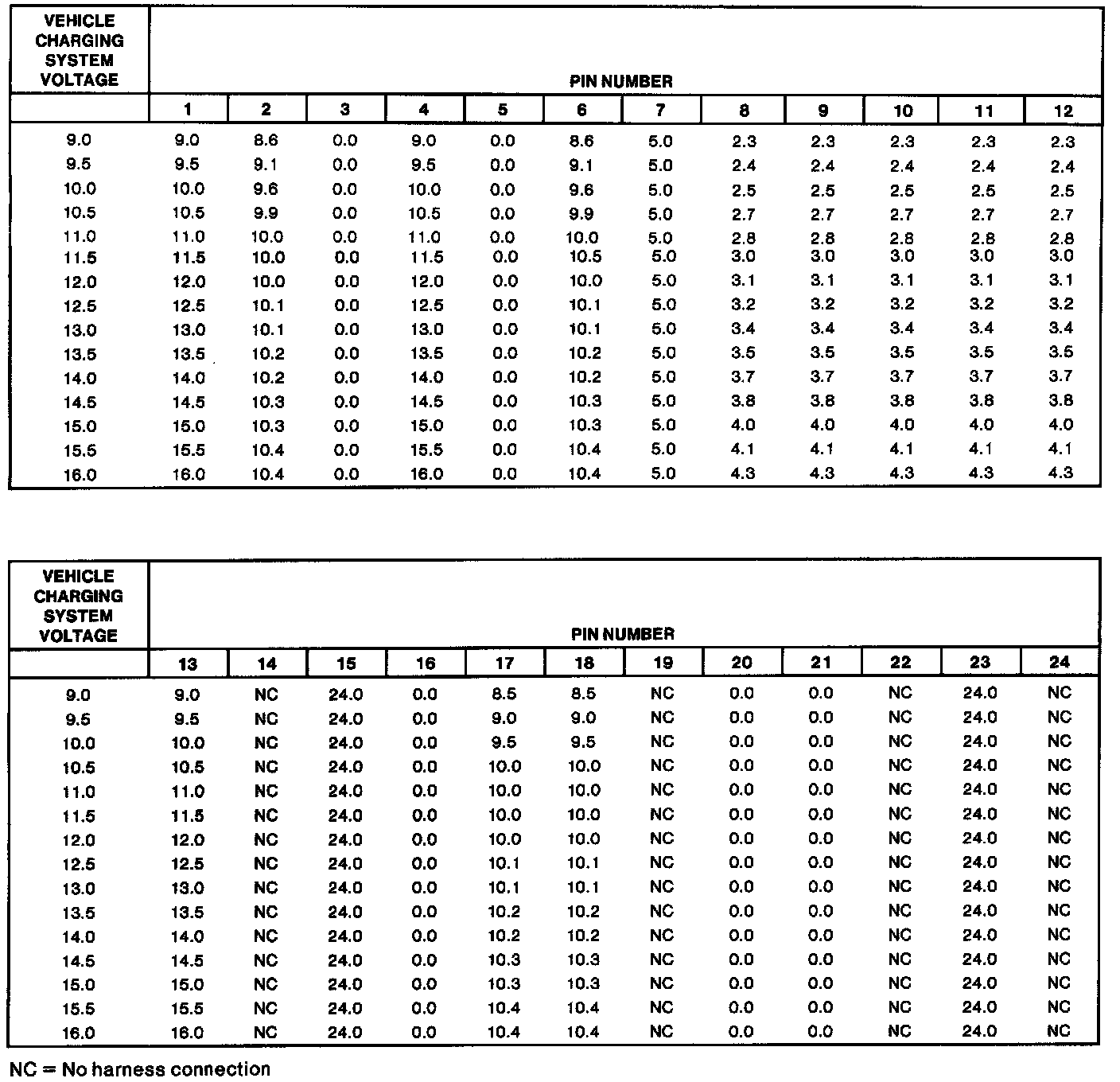 Air Bag Diagnostic Monitor Typical Pin Voltages With System Connected and Engine Running
