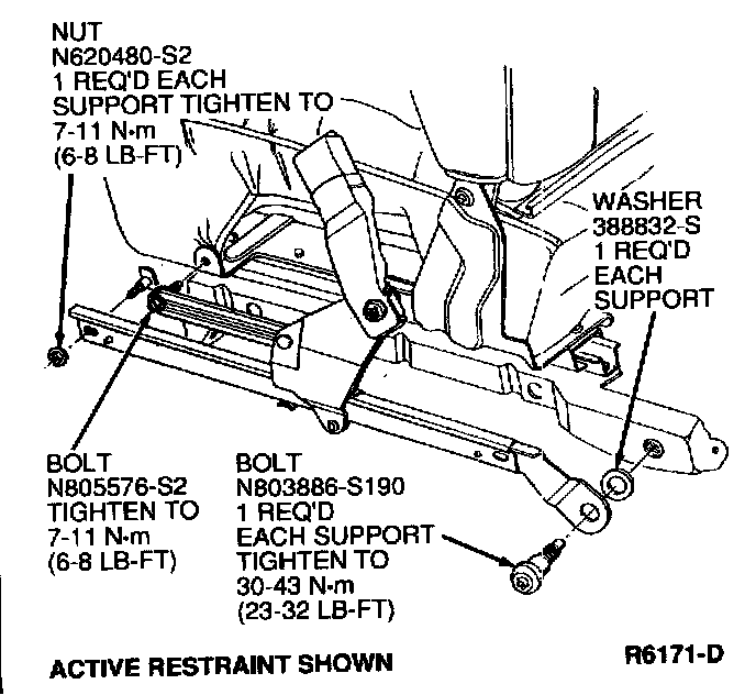 1. Position buckle assembly to slide bar. Tighten bolt to 30-40 Nm (22-30 lb-ft).