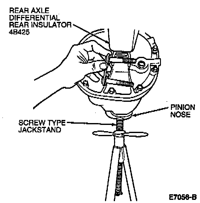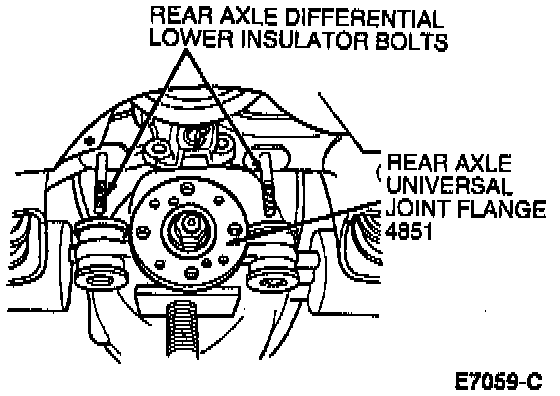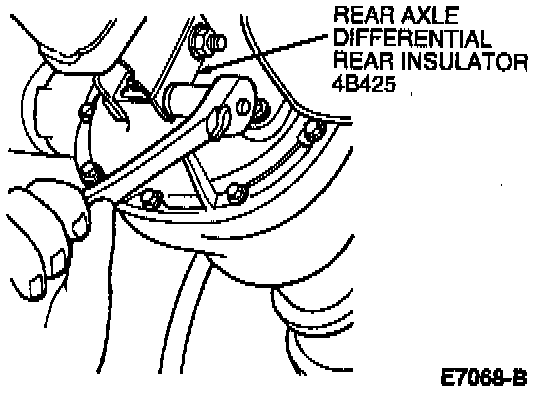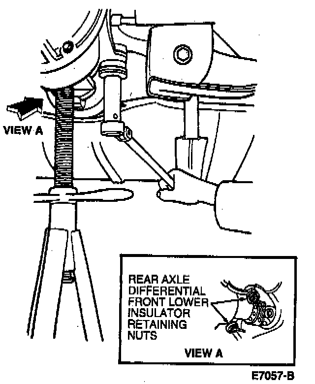 9. Using a jackstand, raise and locate rear axle housing on rear axle differential front lower insulator bolts.