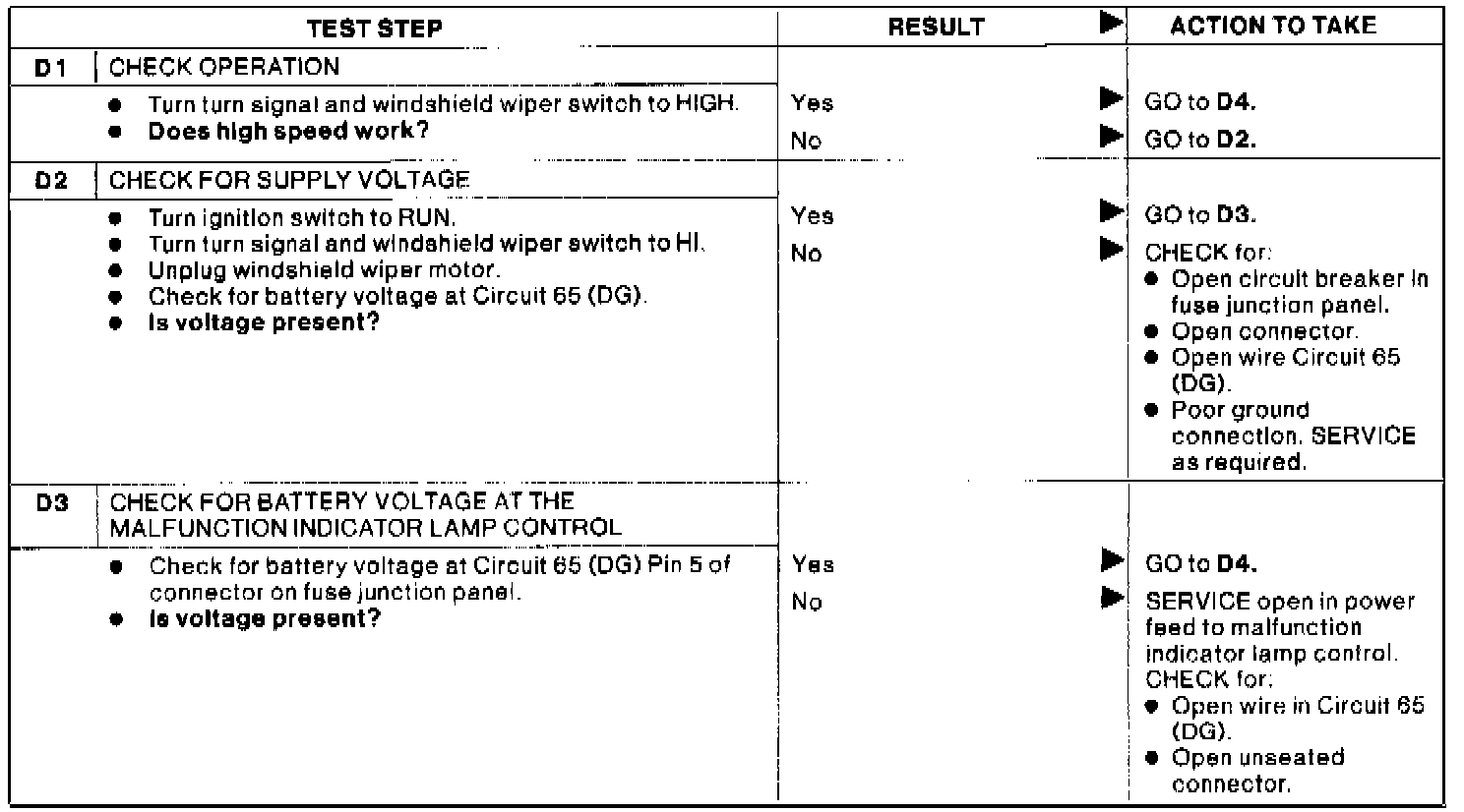 Test D: Windsheild Wipers Inoperative At Low Speeds.: