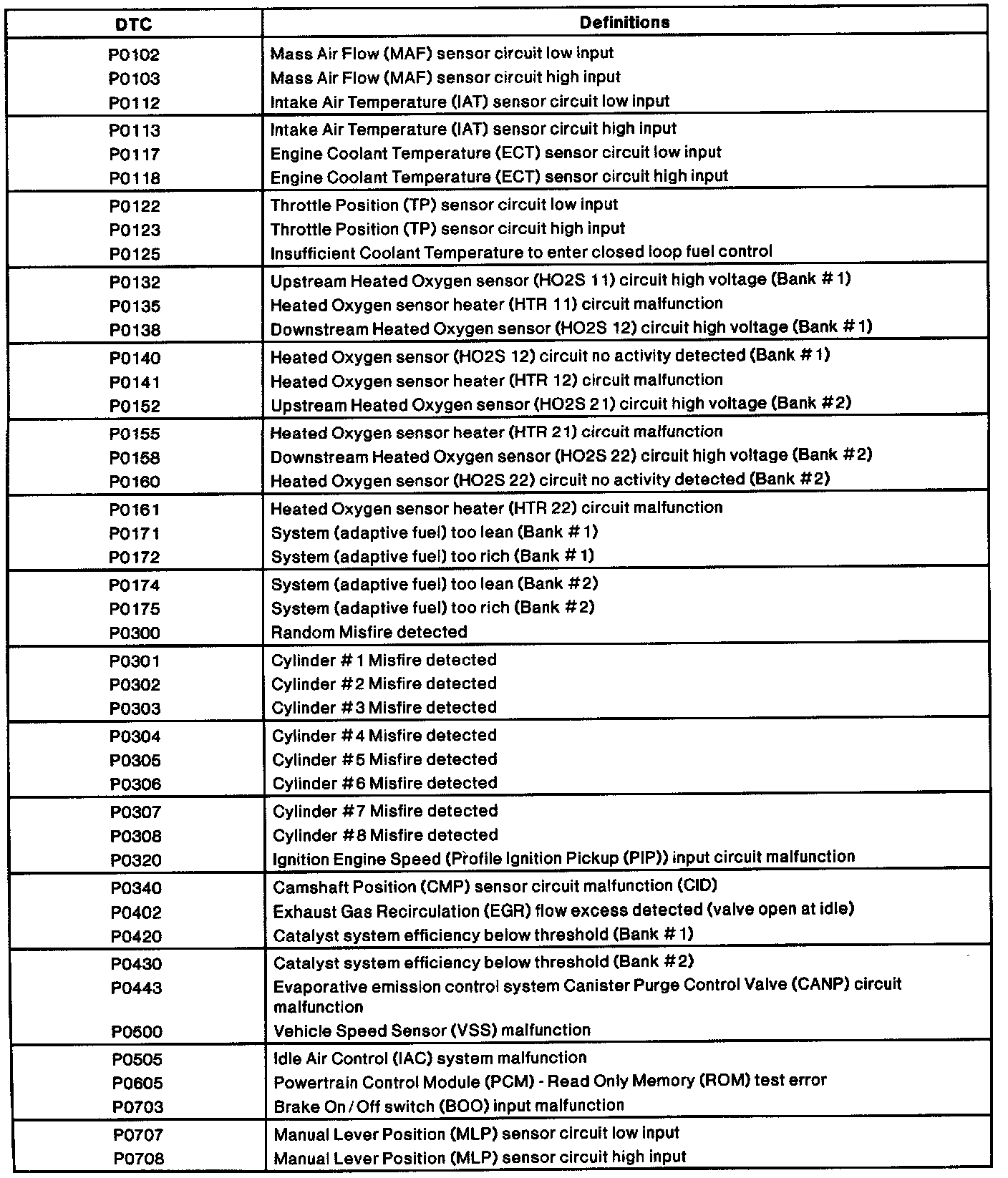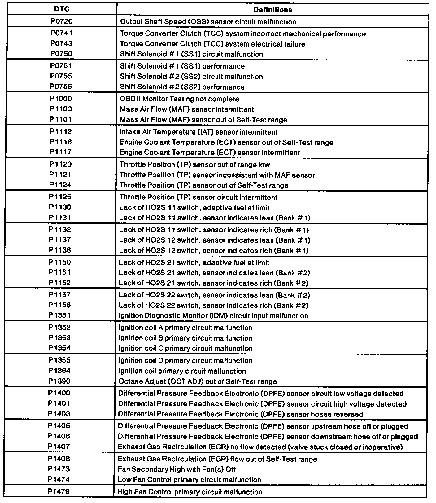 Diagnostic Trouble Code (DTC) Definitions (Part 1 Of 3):