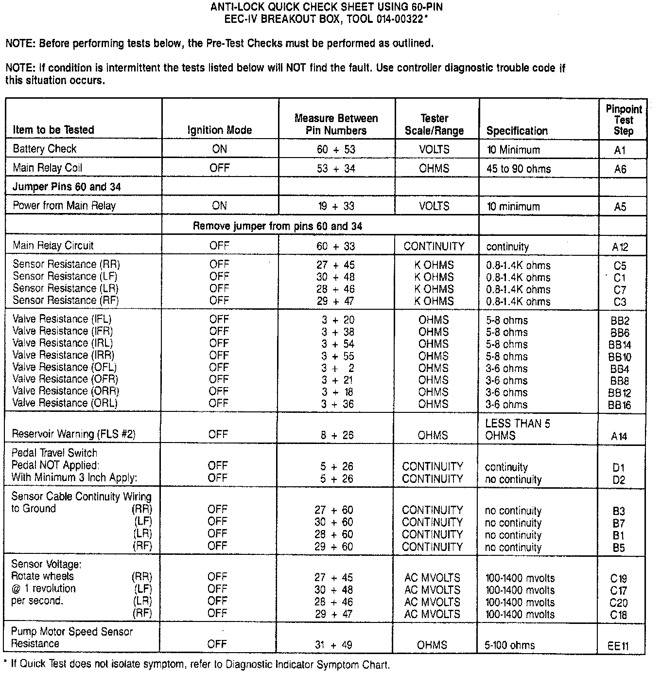 Pinout Values and Diagnostic Parameters