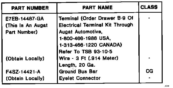 2. Attach a terminal (order drawer B-9 through Augat Automotive (Augat gives it this Ford P/N: E7EB-14487-GA) to a 3 ft.(91.4cm) length of 20 ga. wire.