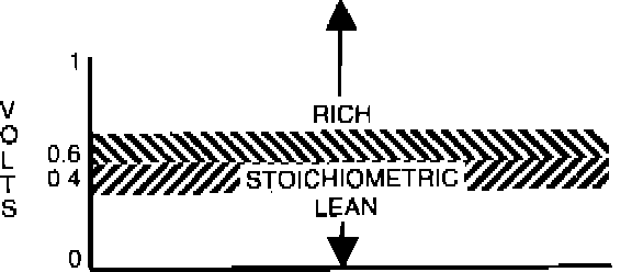The Powertrain Control Module (PCM) uses the input from the HO2S sensor to fine tune the air fuel ratio. The HO2S sensors are mounted in the exhaust flow. The sensors work between zero and one volt output depending on the oxygen in the exhaust mixture. Each sensor acts as a voltage source and series resistance. Lean of stoichiometric (14.7:1) air/fuel ratio, the sensor will output a voltage between zero and 0.40 volt. Rich of stoichiometric, the sensor will output voltage between 0.60 and 1.0 volt at a HO2S tip temperature of 350°C (662°F).