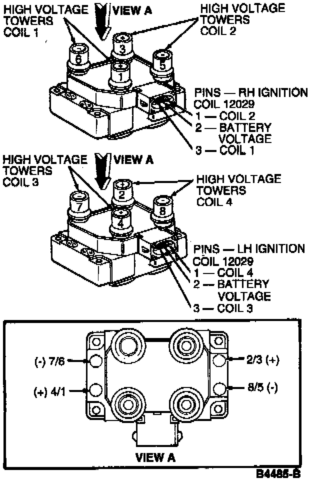 The ignition coils are mounted on ignition coil brackets which are attached to the engine front cover.