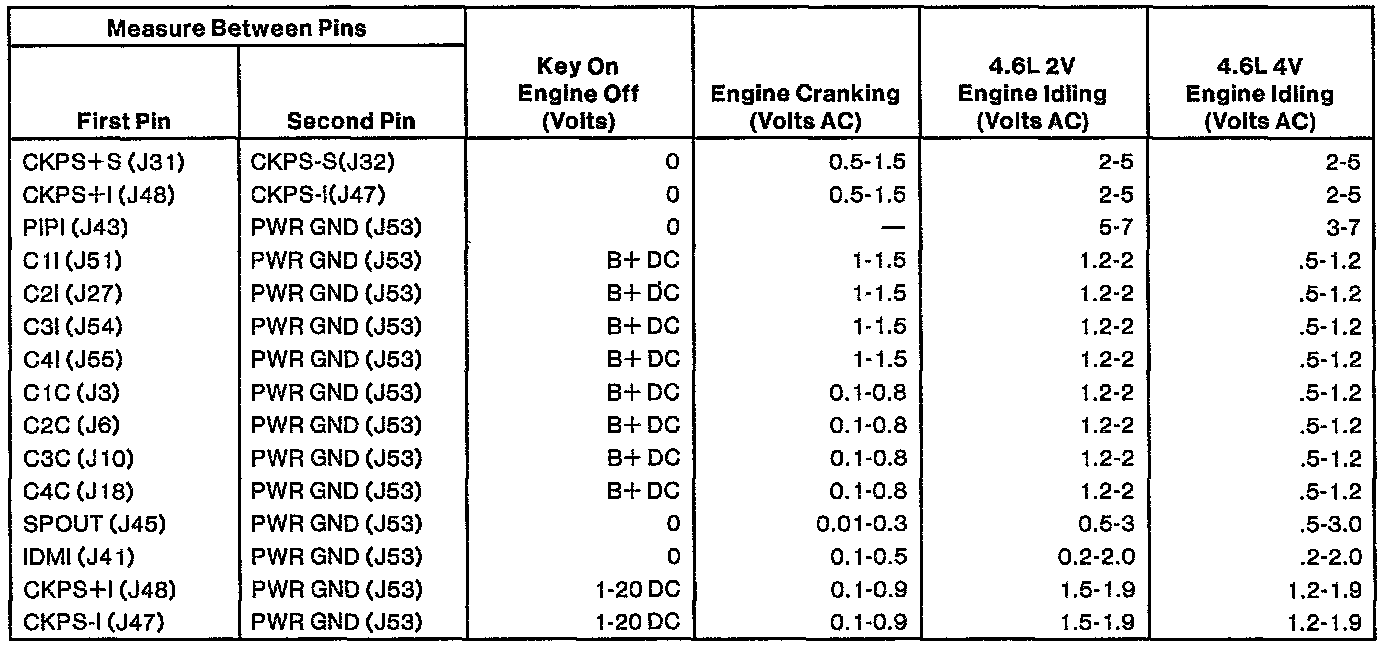 Pinout Values and Diagnostic Parameters