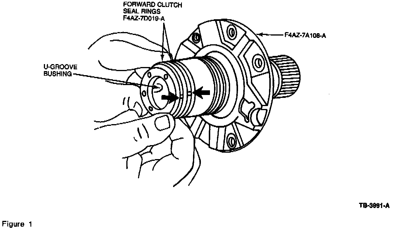 2. Replace the Stator Support with a new Stator Support (F4AZ-7A108-A) which has a rear U-groove bushing.