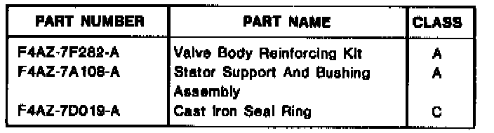 THIS STATOR SUPPORT MUST BE USED WITH # 3 AND # 4 ID/OD CHAMFERED CAST IRON SEAL RINGS (F4AZ-7D019-A).