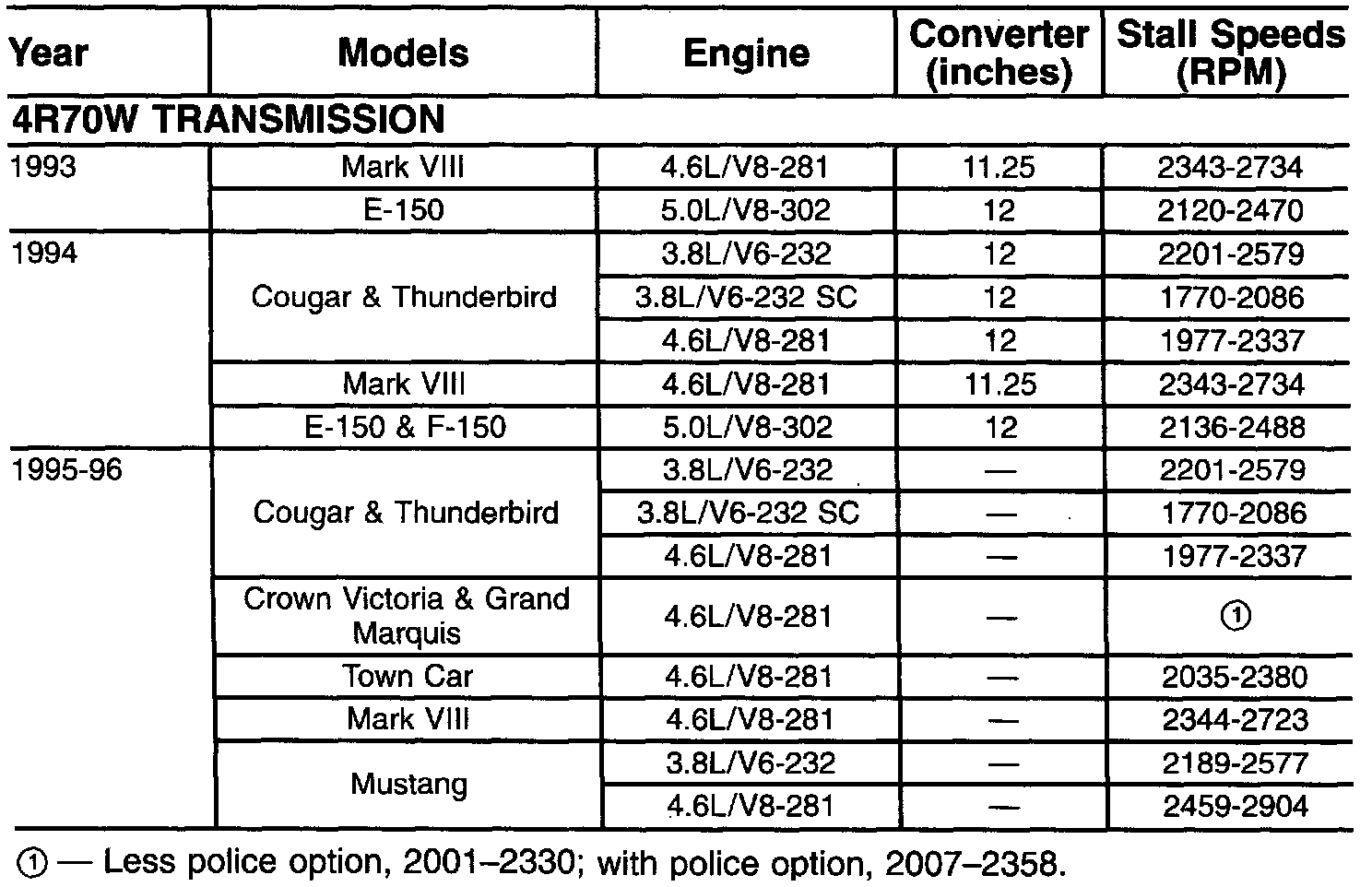 4. Note results and shift to Neutral. Compare results with specifications shown in the Stall Speed Chart.