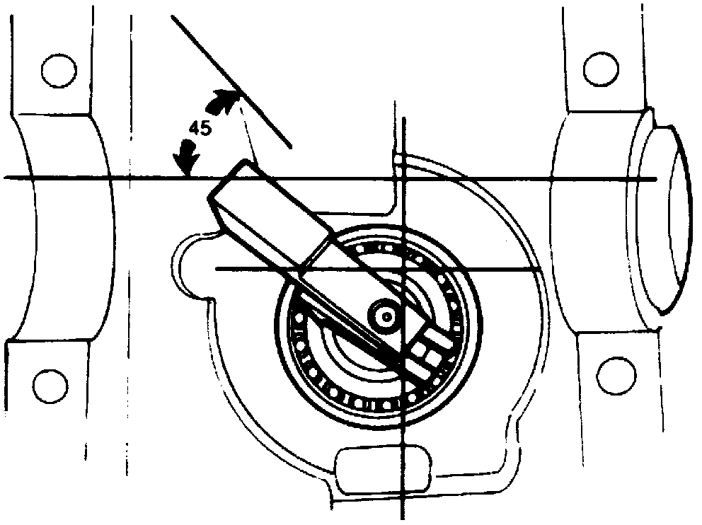 3. Rotate gauge block several half turns to ensure bearings are seated properly. Rotational torque should be 20 in lb with new bearings. Set gauge block at an angle approximately 45° from horizontal.