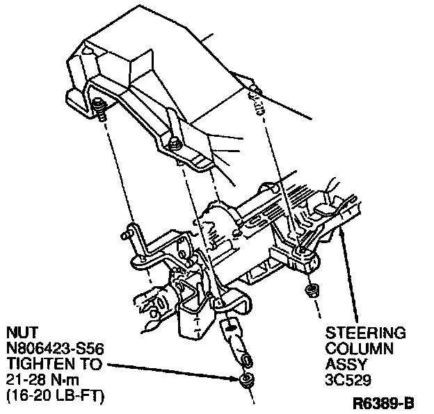 12. Cover front seat to protect from damage. Remove four nuts retaining steering column tube to instrument panel and steering column tube on front seat.