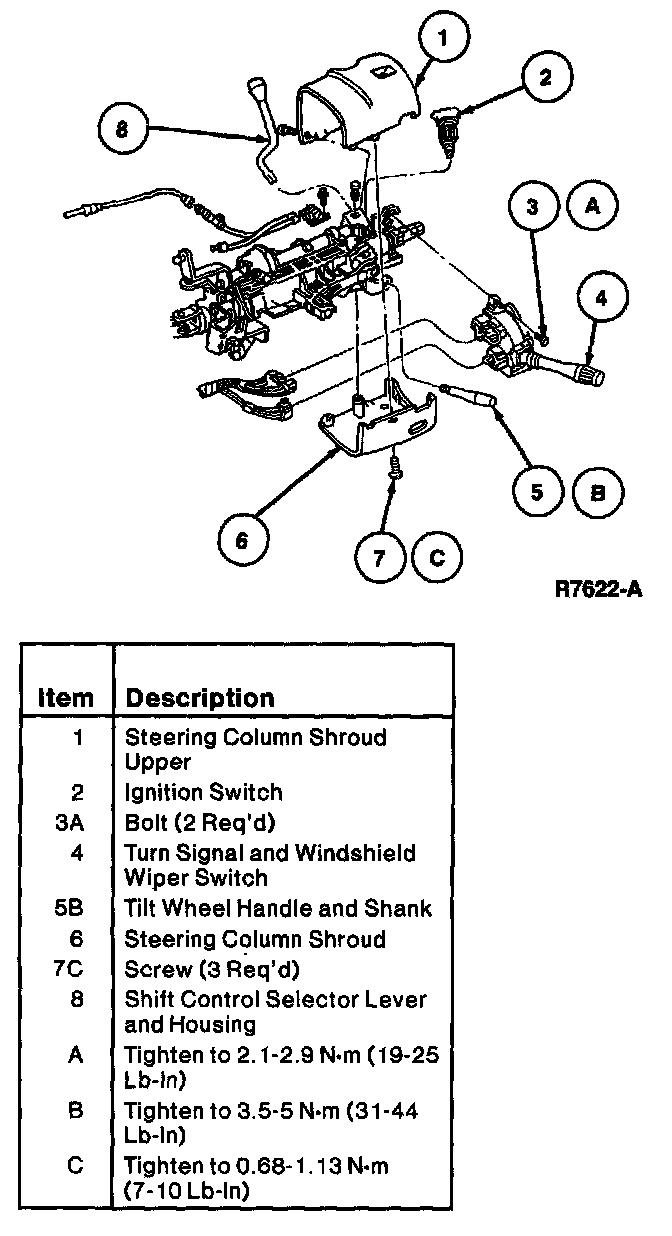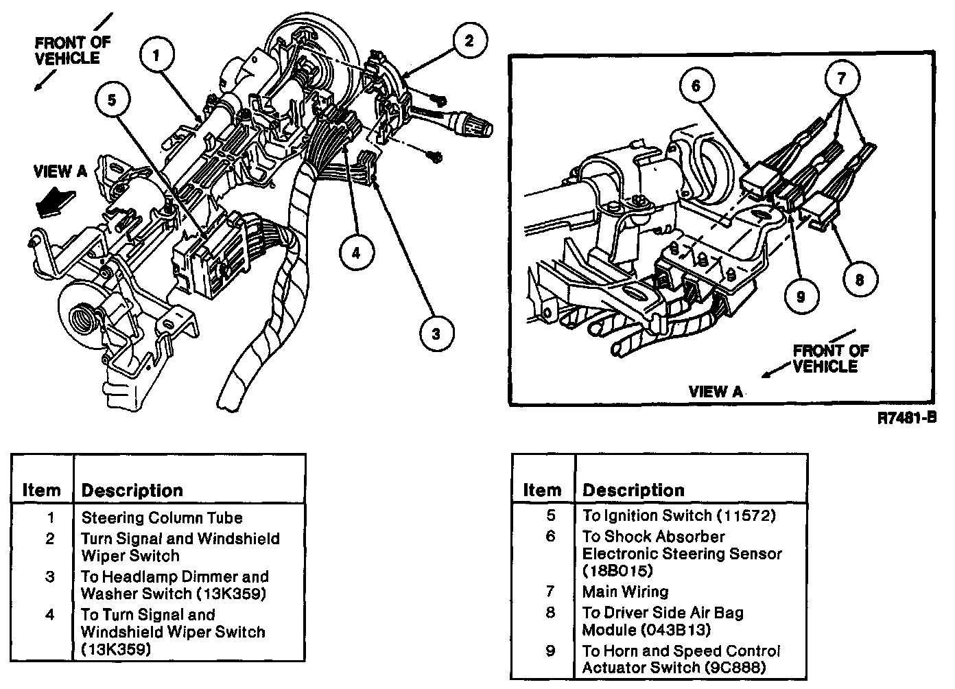11. Disconnect wiring from steering column tube switches and PRNDL cable from steering column tube.