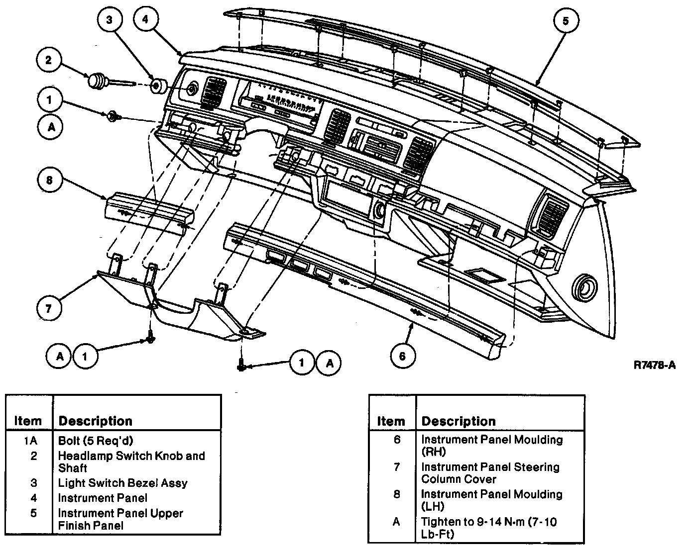 6. Remove two bolts and instrument panel reinforcement from under steering column tube.