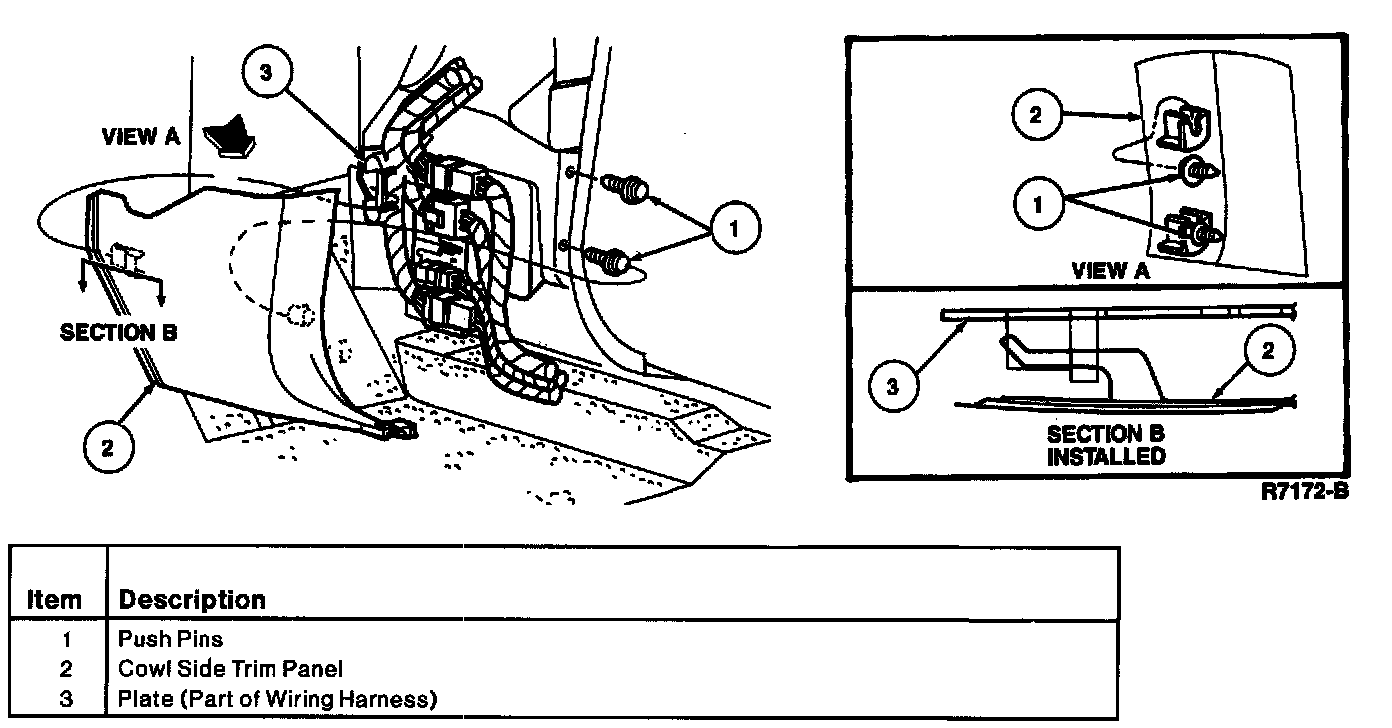 NOTE: During installation of LH lower instrument panel moulding install the front of the LH lower instrument panel moulding into the retainer clip.