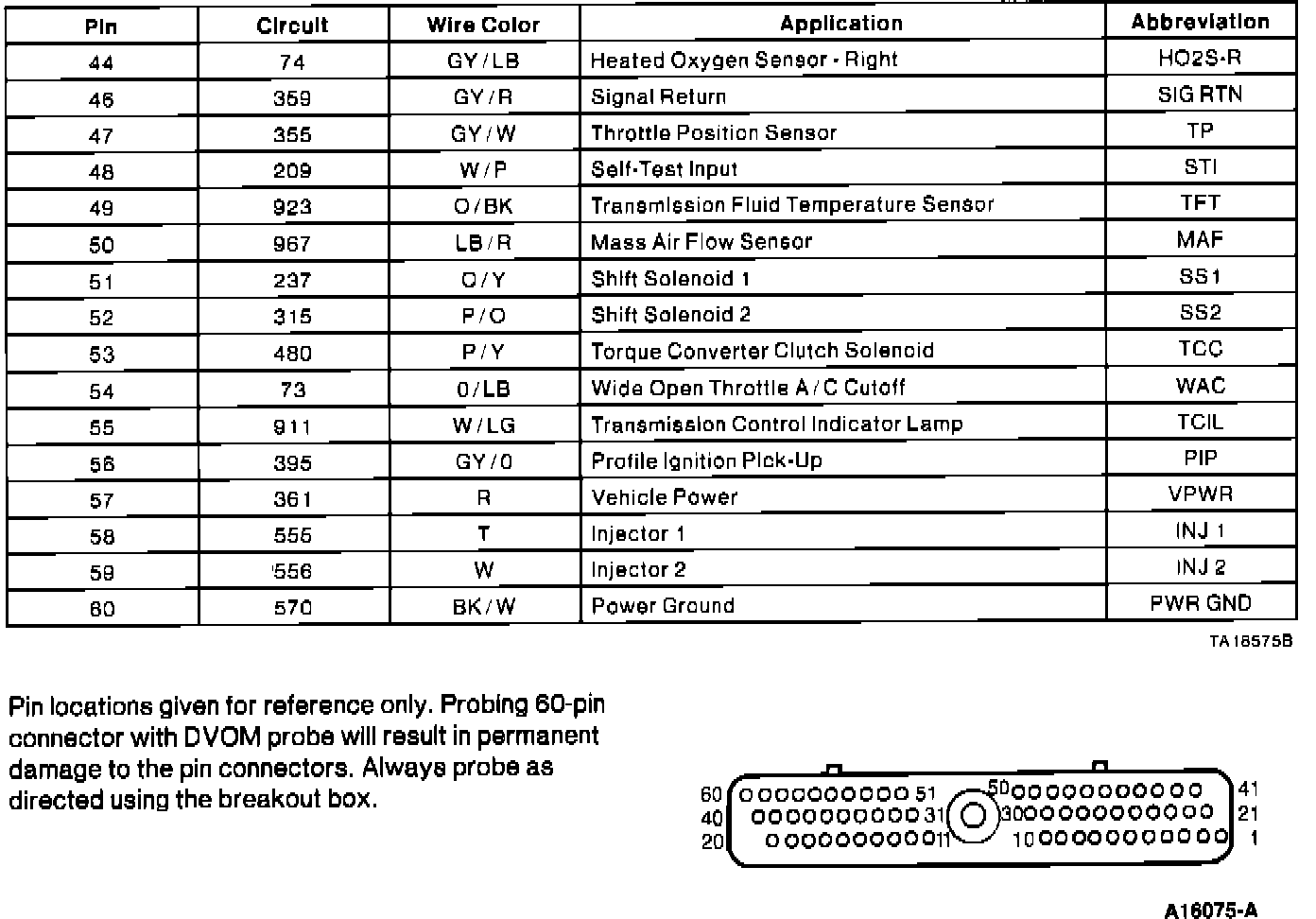 Powertrain Control Module (PCM) Connector Pin Usage: