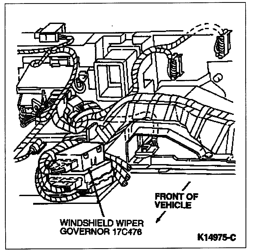 4. Disconnect the multiple connector at main wiring loom. Remove the windshield wiper governor from the bracket.
