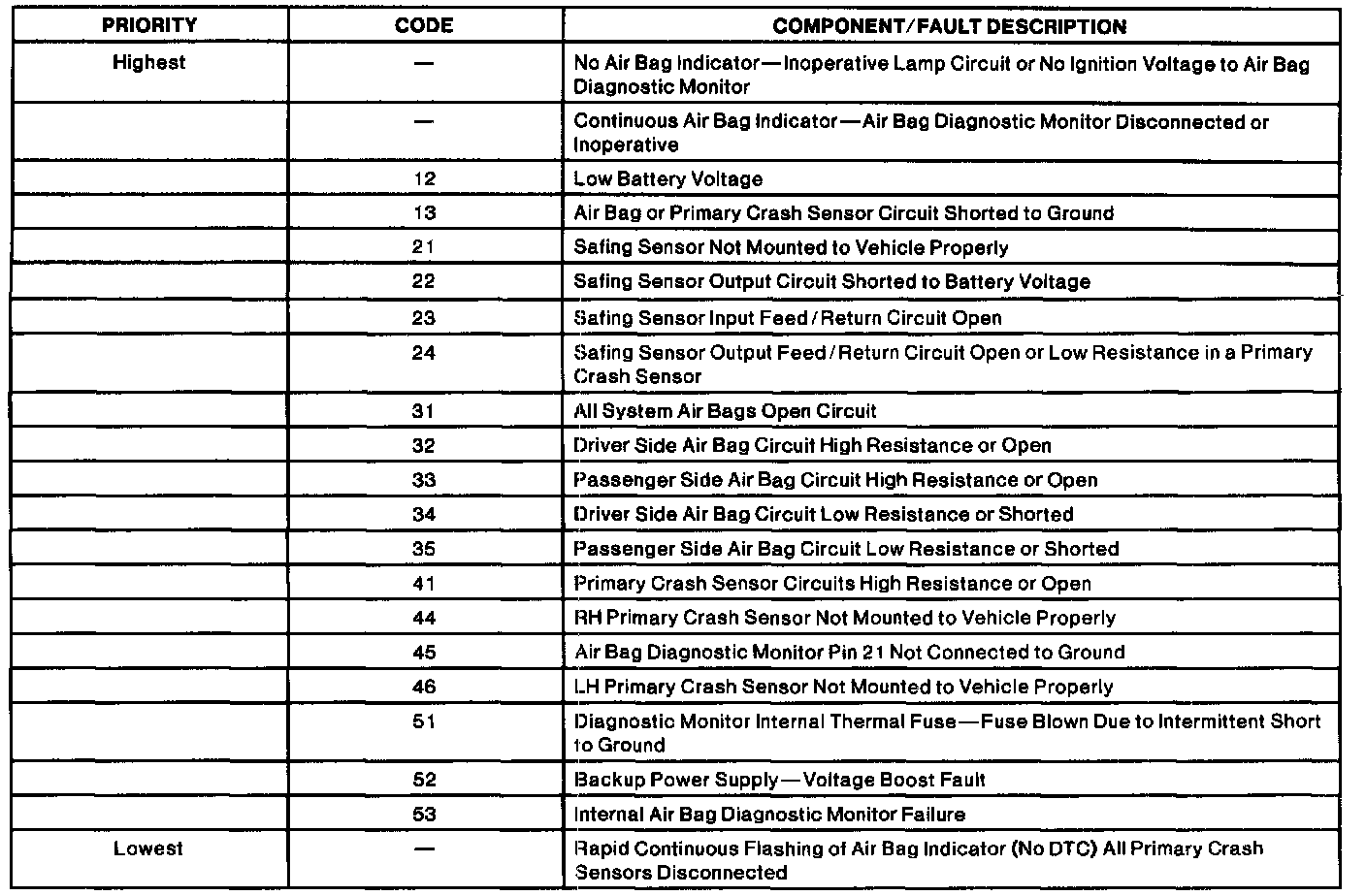 Diagnostic Trouble Code Priority Index