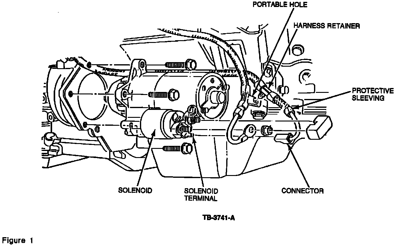 4. Remove harness retainer from portable hole on battery cable. Figure 1.