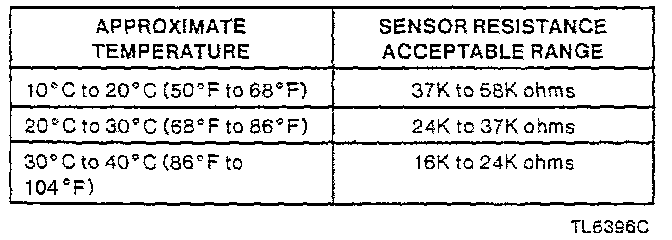 In-Car Temperature Sensor Diagnosis Resistance Table: