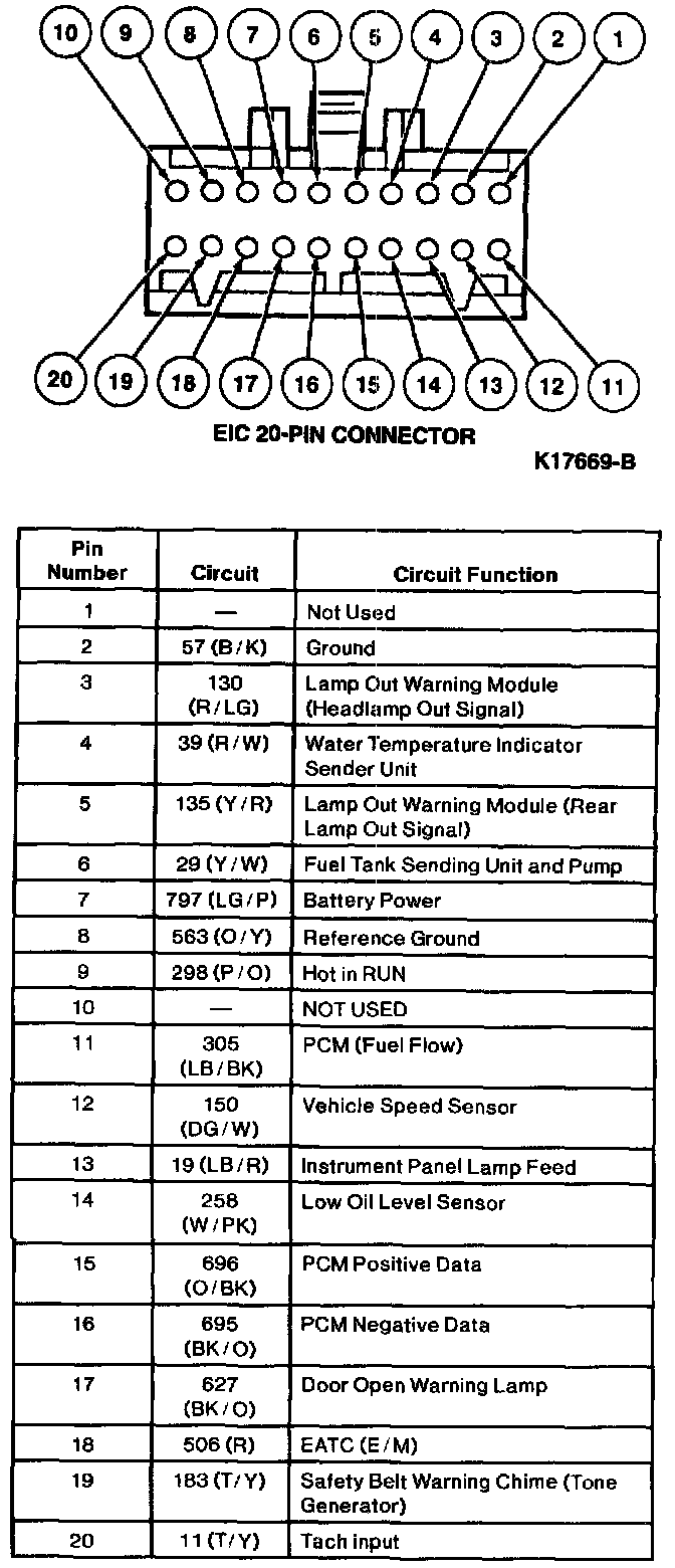 Electronic Instrument Cluster 20 - Pin Connector: