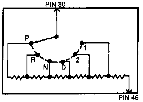 The MLP has six separate resistors in series. Each resistor has an output connection corresponding to a transmission position (P, R, N, D, 1, 2). The output wiper arm is linked directly to the transmisssion selector linkage.