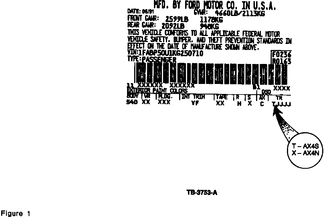^ The letter "X" designates an AX4N transaxle. Refer to Figure 1.