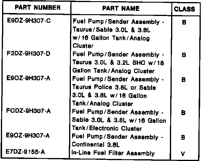 d. Install a new fuel pump/sender assembly. Refer to the Parts Block for correct application.