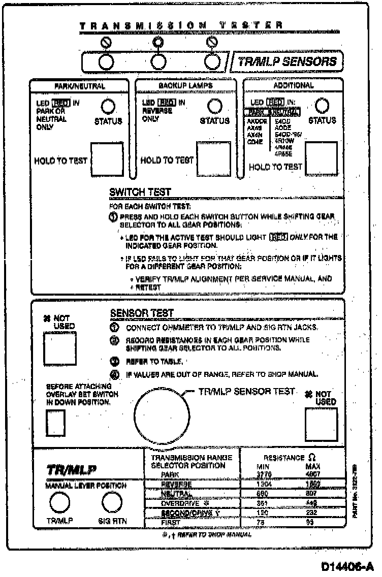 Transmission Tester Use for TR Sensor Diagnosis