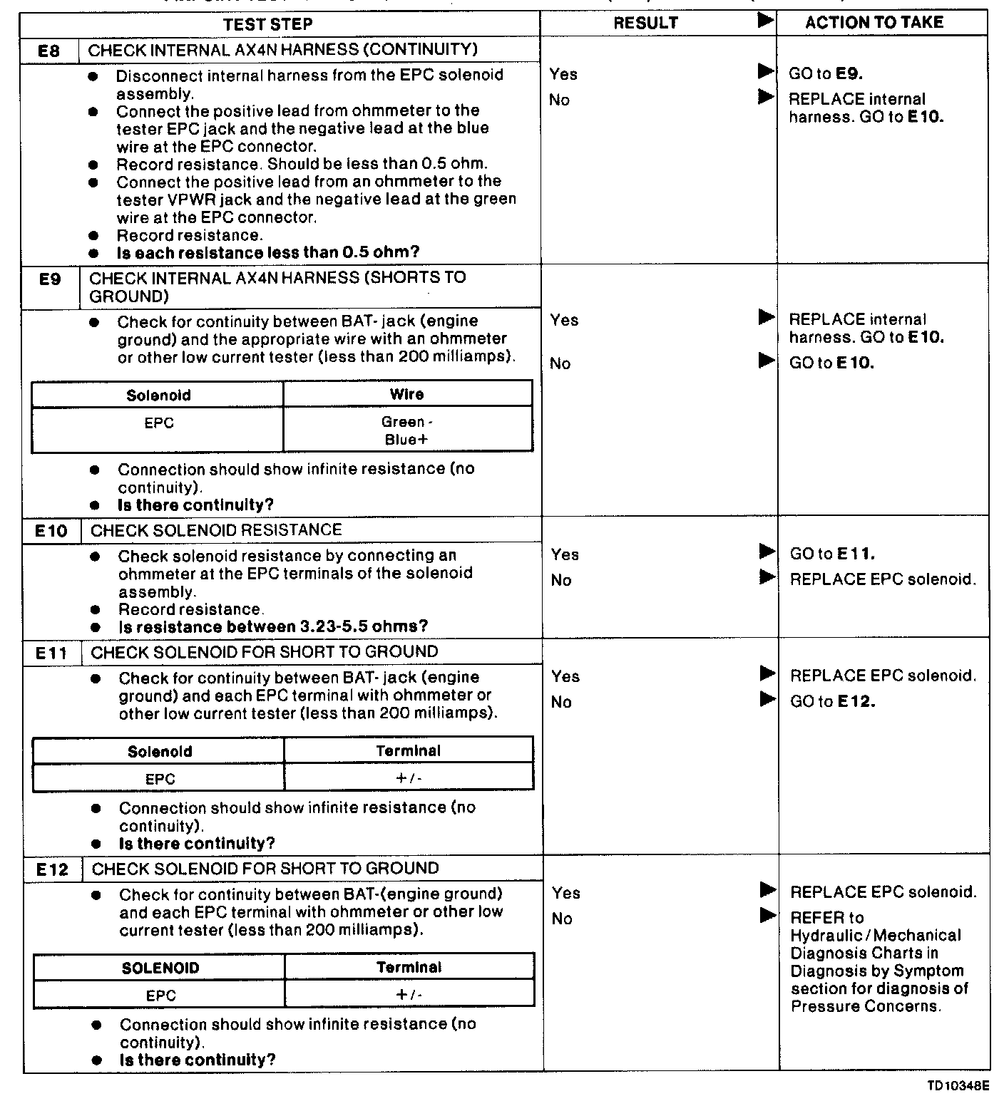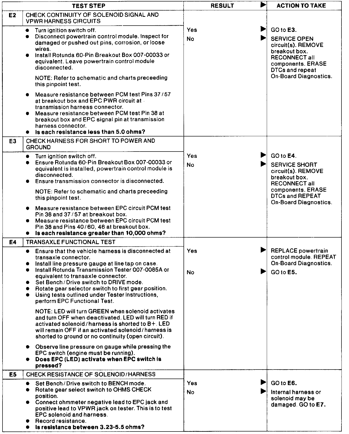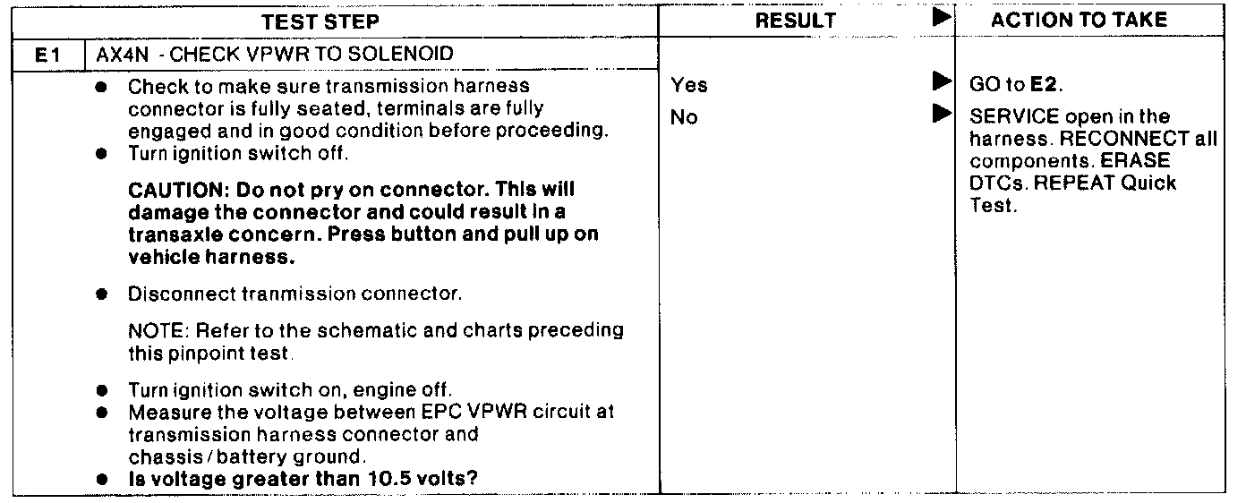 This Pinpoint Test is designed to diagnose the EPC solenoid electrical system ONLY. To prevent replacement of good components, note that the following areas may be at fault: