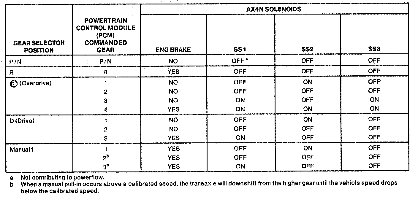 Shift Solenoid Operation Chart