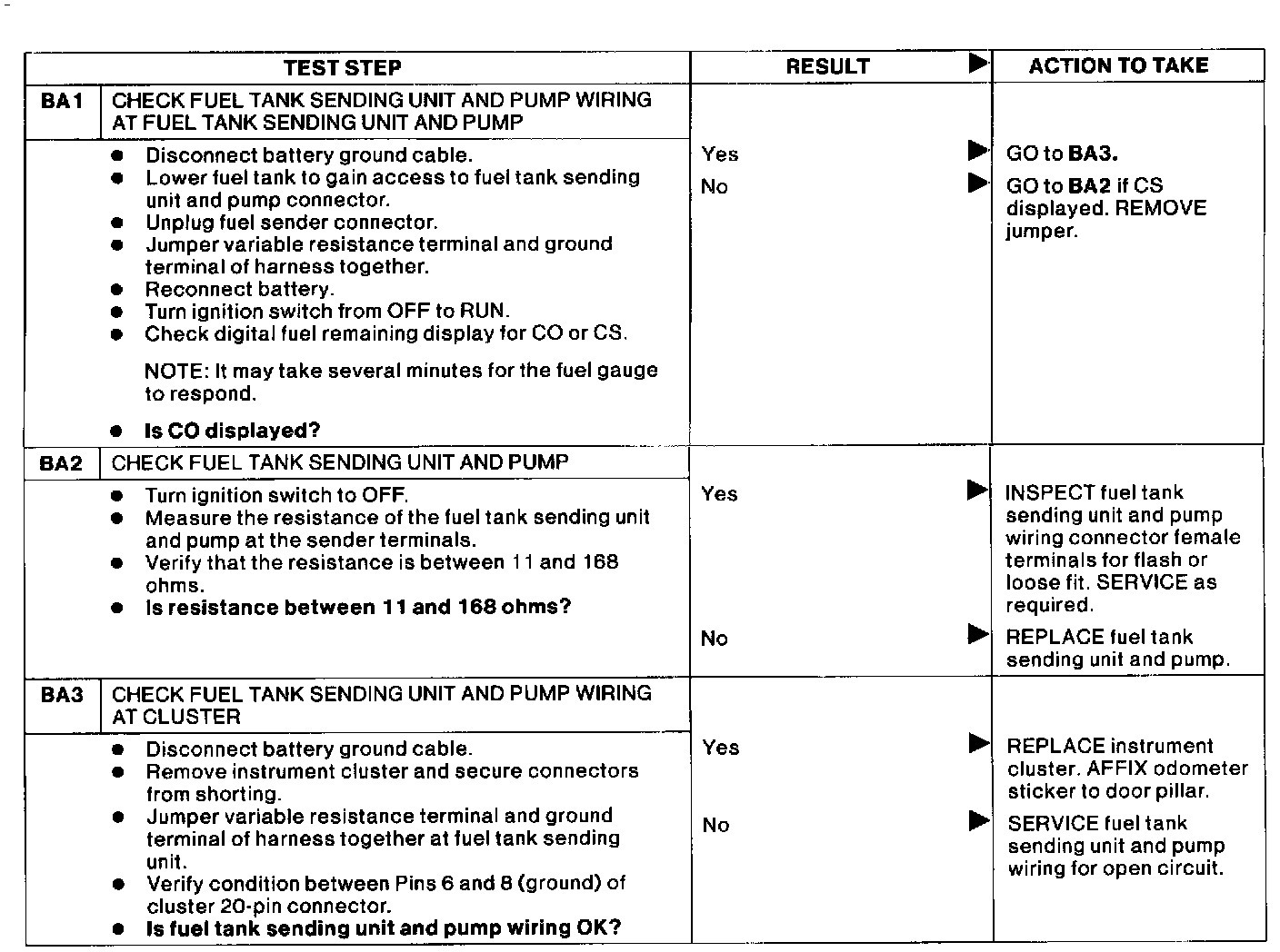 Check Fuel Tank Sending Unit System